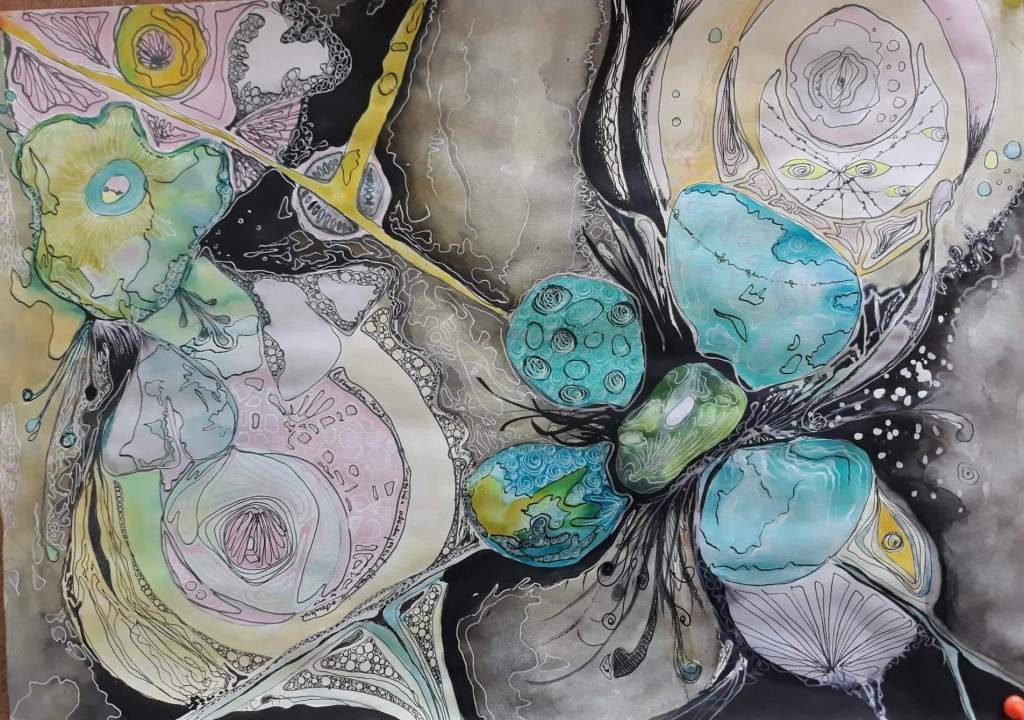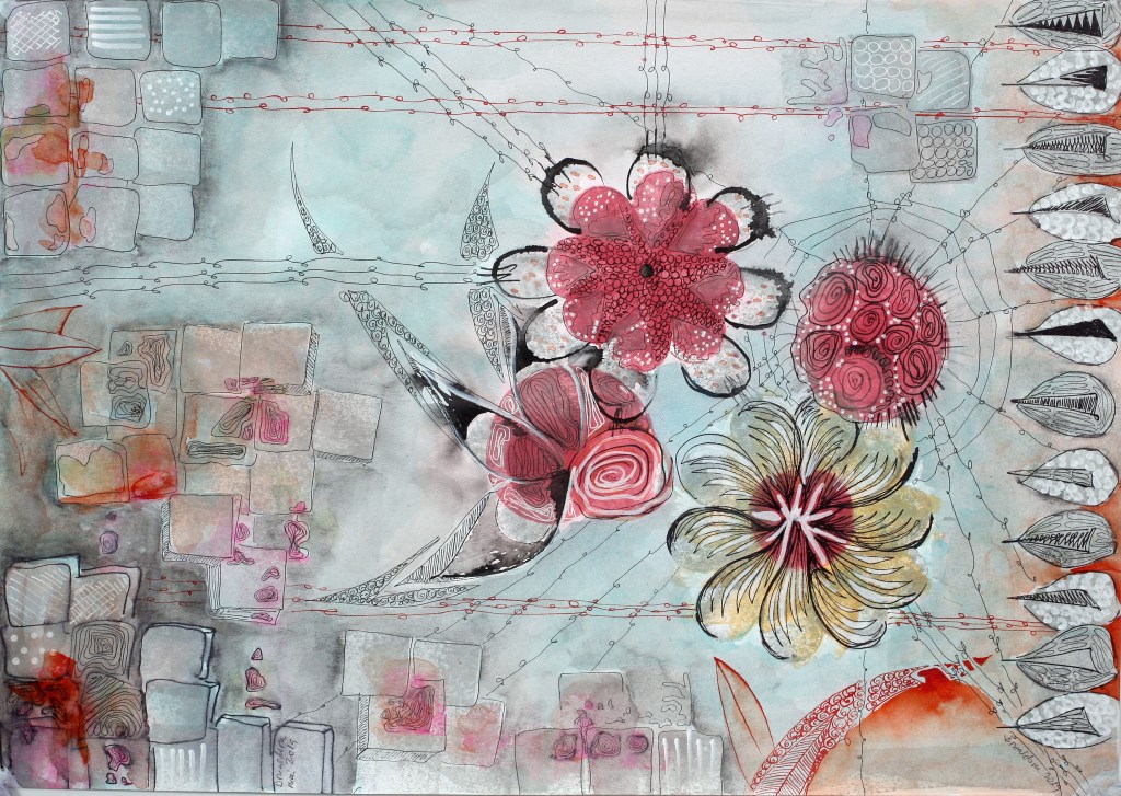 Lucrările au fost realizate pe hârtie reciclată, în tehnică mixtă (tuș și peniță, pensulă, liner).